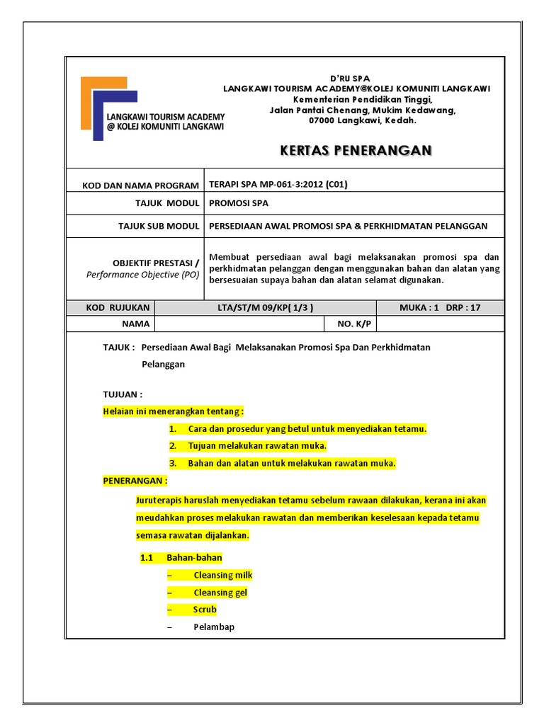 Promosi Spa Dan Perkhidmatan Pelanggan Pdf